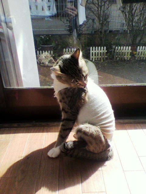 前回のおはニャシの続きは… これまでのブログはこちら 2017.03.052017.08.30 あどけなかったころのメルは、こんな出来事が起きるとは思っても見なかったことでしょう。 あの数日後、 病院に行き避妊手術を受けました。 1日入院。朝一番で迎えに。 そしたら、こんなの着せられ帰ってきました。 私は メルに何度もごめんねと言いました。 一週間ほど寝たきりで、やっと元気になり日向ボッコそしてみるみるいつものメルに良かった~。 リードをくわえ散歩だぁ。やっぱ外は気持ちいいにゃ~ 病み上がりで疲れたのかな。ゆっくり おやすみ。 大切な命。ちゃんと育てようとまた心に思いました。